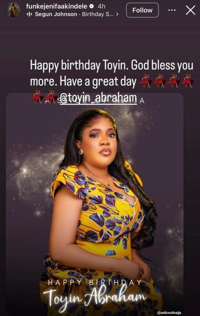 On her Instagram story, Funke Akindele publicly wished Toyin Abraham a happy birthday, melting hearts and sparking excitement across Nollywood.